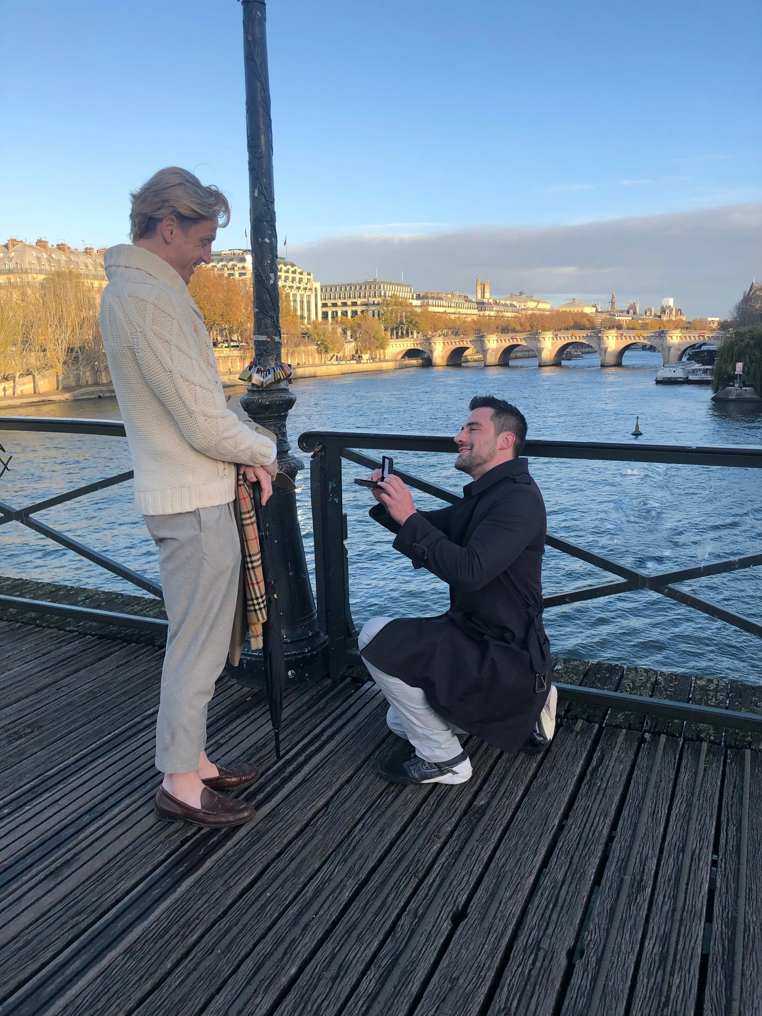 Ethan popped the question on Lover’s Bridge, over the Seine, in Paris, France in November 2022. Reid, thankfully, was blissfully unaware that it was going to happen, though Ethan was a nervous wreck. It had been raining on and off for a few days making it difficult to coordinate a time to visit the iconic location. To be fair, Reid was also a nervous wreck, because they had taken Donna, Reid’s Mother, for her first ever trip to Paris and he was beside himself trying to coordinate the entire trip and all the corresponding details to make it her best trip ever. The long and short of it is that after a beautiful day with a tour of the Paris Opera House, a visit to the Rodín Museum, and capped off by High Tea at the Ritz Carlton, Donna gave an Oscar winning performance about wanting to visit Lover’s Bridge.